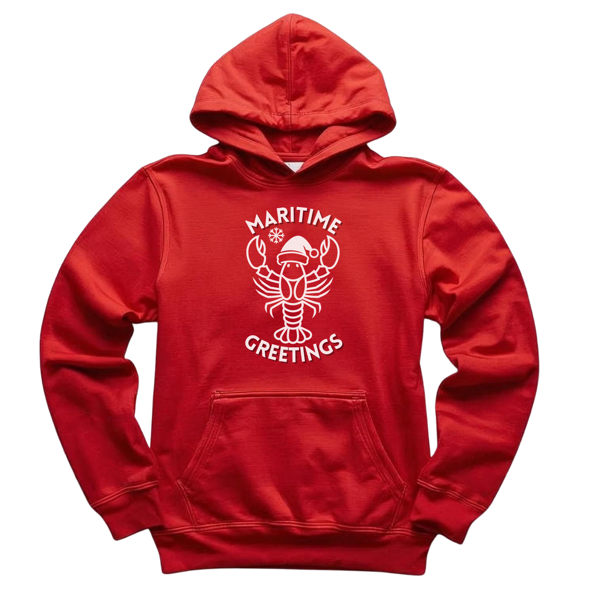 Send Maritime Greetings this holiday season with our delightfully festive lobster hoodie! This charming design features a minimalist design lobster wearing a Santa hat, bringing together the best of coastal culture and Christmas spirit.